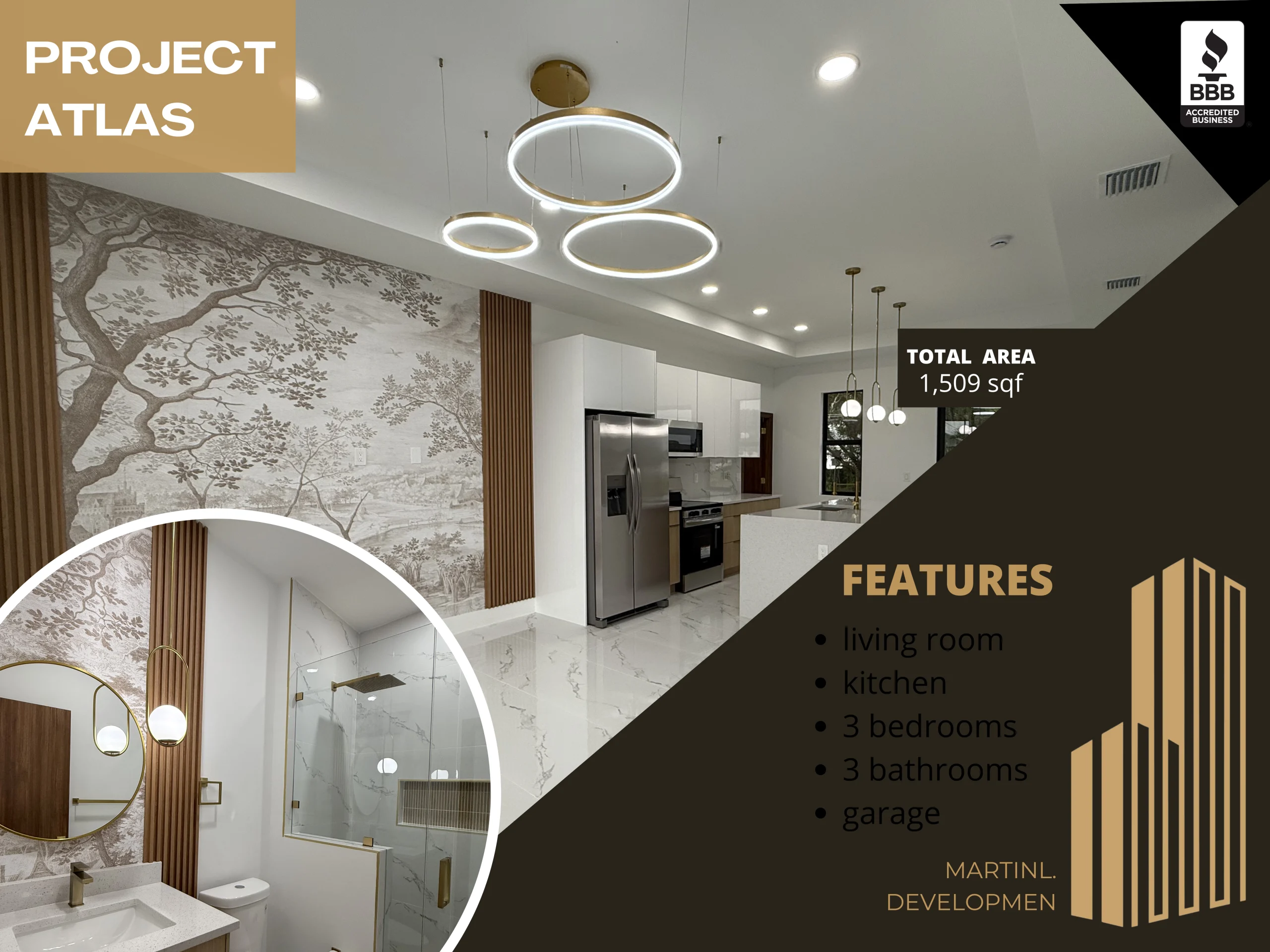 Atlas is the result of smart design, where every square foot is used to its full potential. With 3 bedrooms and 3 full bathrooms, this home proves that functionality and style can coexist — without sacrificing space or affordability. Atlas is ideal for families needing extra room or investors looking for a modern, profitable, and budget-conscious property. Its efficient layout, clean finishes, and well-balanced design make this home a strategic and elegant choice. Atlas isn’t just a house — it’s a smart investment.